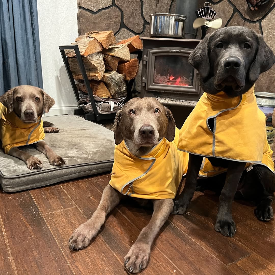 First of all, these are the absolute best and such a game changer for bath time. We have a crazy frenchie that hates bath time so finding a towel that’s cute and dries quick is a plus. The bathrobe is so cute and really contains all that extra hair and water after the wipe down, very cute/fashionable too! Honestly would recommend their products! A company that really cares about their products for your pups!