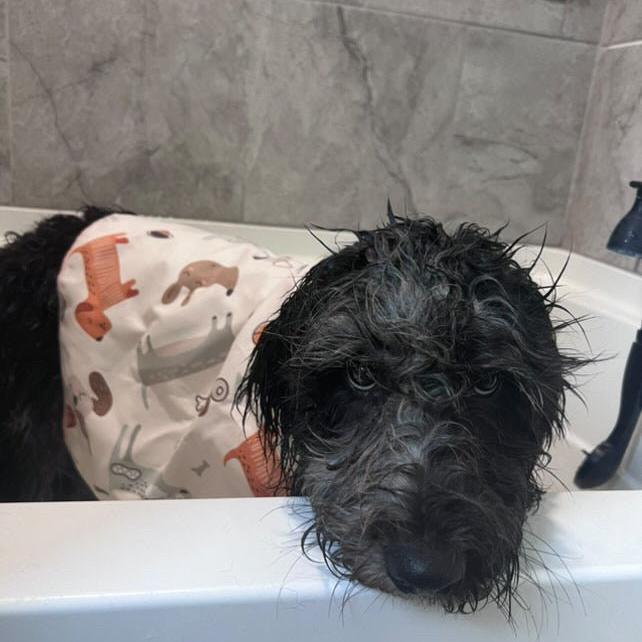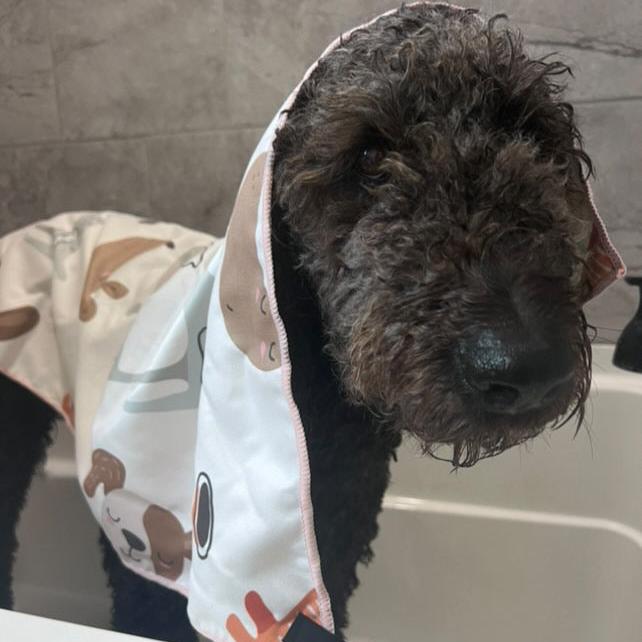 "I just got the Pouty Paws bath towel for my dog, and I’m really impressed! It has a cute pattern and is super absorbent, making drying off after baths so much easier. The fabric is durable and doesn’t pick up fur, which is a major win. Plus, it dries quickly, so I don’t have to deal with soggy towels in my bag."